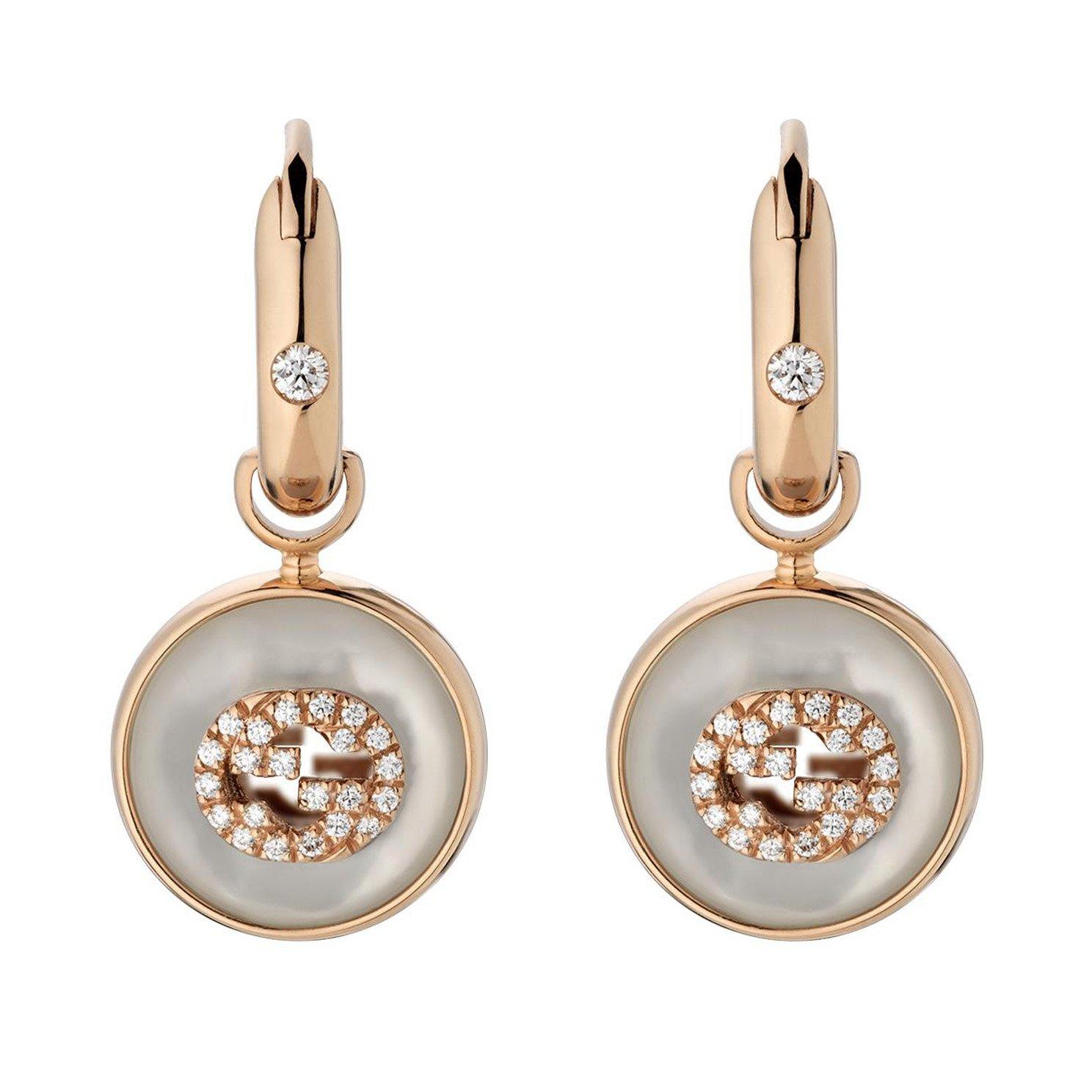 Gucci Interlocking 18ct Rose Gold Mother of Pearl Drop Earrings 0143029 Beaverbrooks the Jewellers Very well made.
