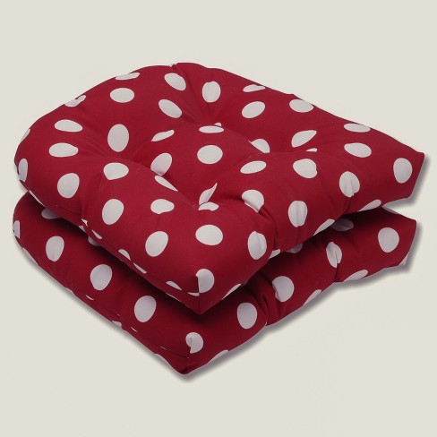 Outdoor 2 piece Wicker Chair Cushion Set Red white Polka Dot Pillow Perfect Weather resistant Fade resistant Tufted Corner Seat Cushions Target Very well made.