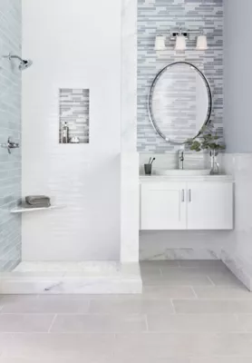 Hampton Carrara Polished Marble Corner Shower Seat The Tile Shop Very well made.