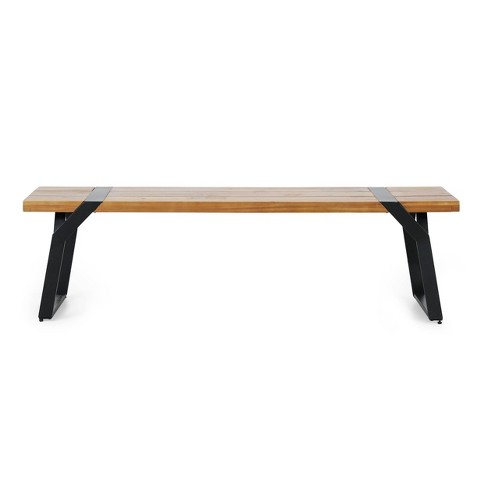 Varva Outdoor Acacia Wood Dining Bench Teak black Christopher Knight Home Weather resistant Iron Frame Seats 2 Target Very well made.
