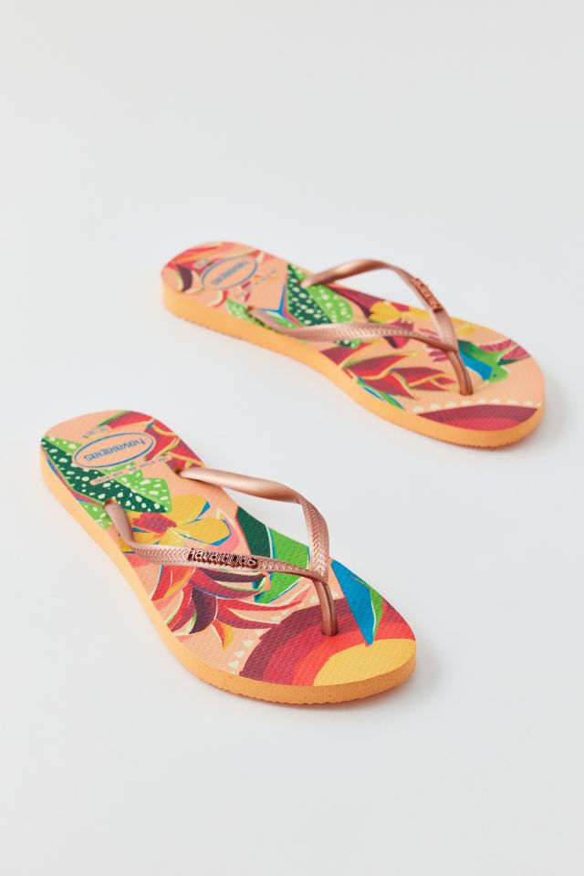 Urban Outfitters Havaianas Printed Slim Flip Flop Sandal in Orange Print Very well made.