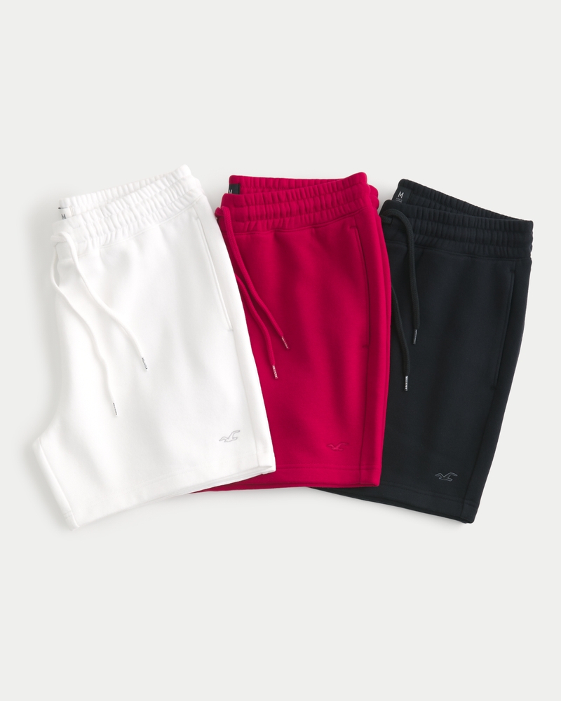 Men s 5 Fleece Icon Shorts 3 Pack in White Red Black Size XS from Hollister Very well made.