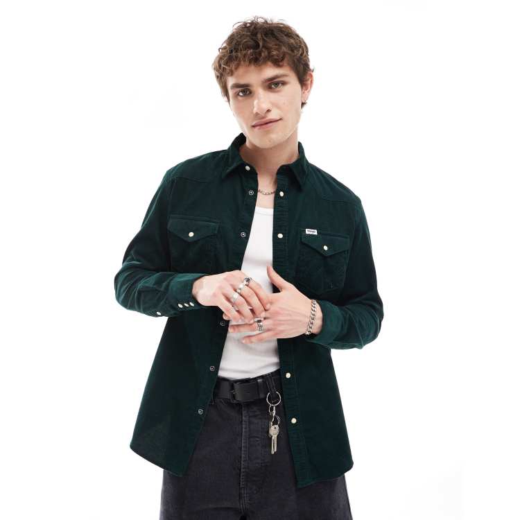 Dark Green Cord Twin Pocket Western Long Sleeve 100 Cotton Shirt Very well made.