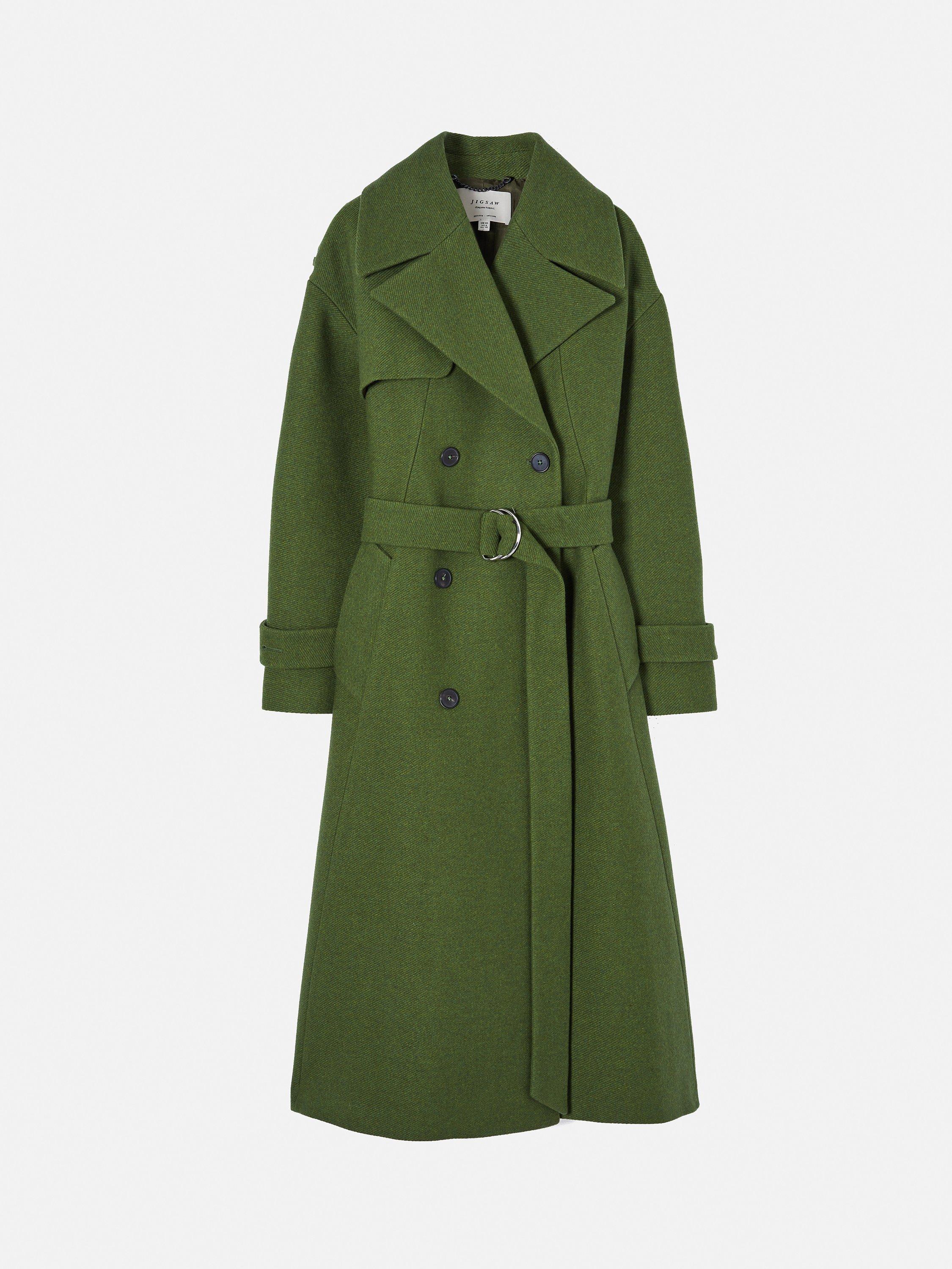 Jigsaw Nelson Italian Twill Wool Blend Trench Coat Khaki XL Very well made.