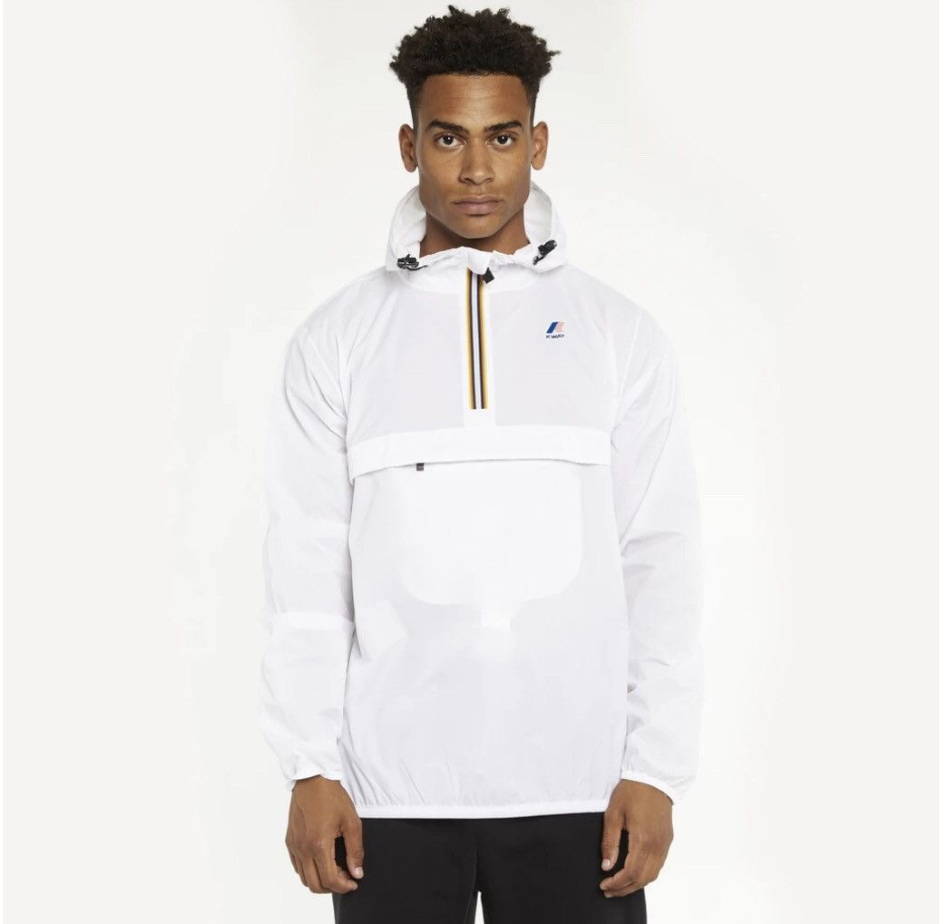 K Way Le Vrai Leon White Packable Quarter Zip Windbreaker Rain Jacket Very well made.