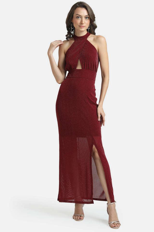 Buy KAZO Maroon Solid Halter Neck Mesh Women s Maxi Dress Shoppers Stop Very well made.