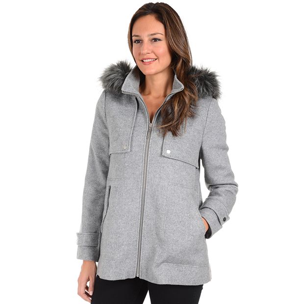Women s Kensie Faux Fur Hooded Tweed Jacket Very well made.