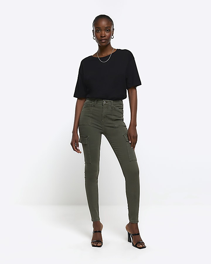 Khaki high waisted skinny cargo jeggings River Island Very well made.