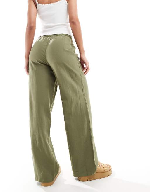 Pieces linen touch wide leg trousers in khaki ASOS Very well made.