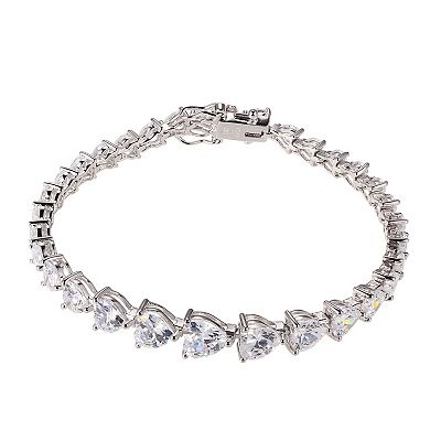 Rhodium Plated Sterling Silver Cubic Zirconia Graduated Heart Tennis Bracelet Very well made.