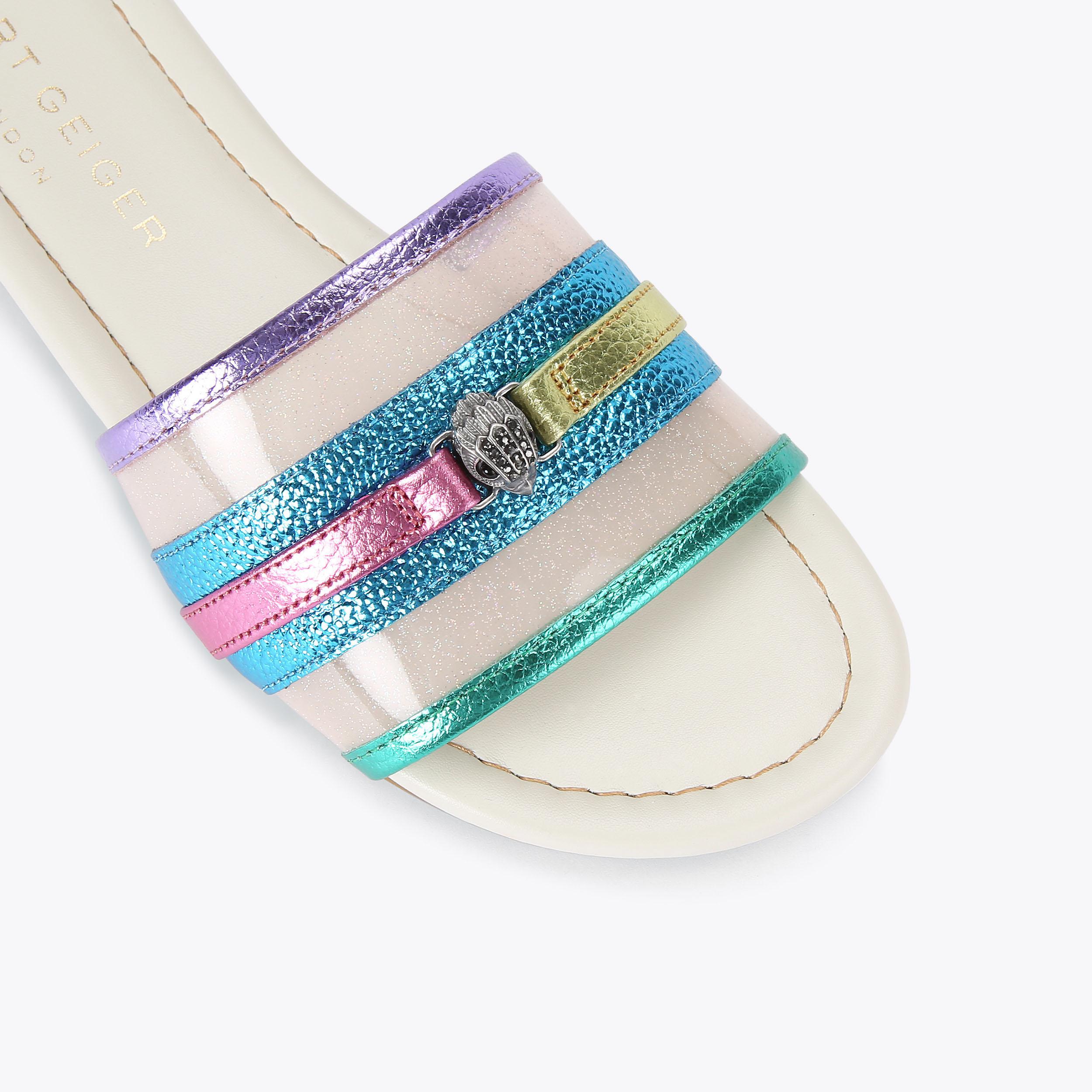 KENSINGTON FLAT SANDAL Metallic Rainbow Stripe Flat Sandals by KURT GEIGER LONDON Very well made.