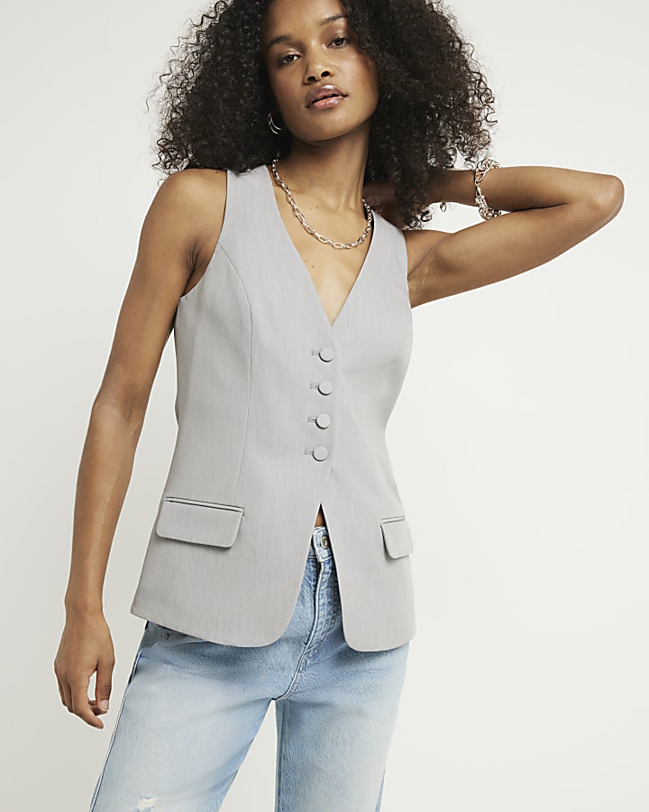 Grey fitted longline waistcoat River Island Very well made.