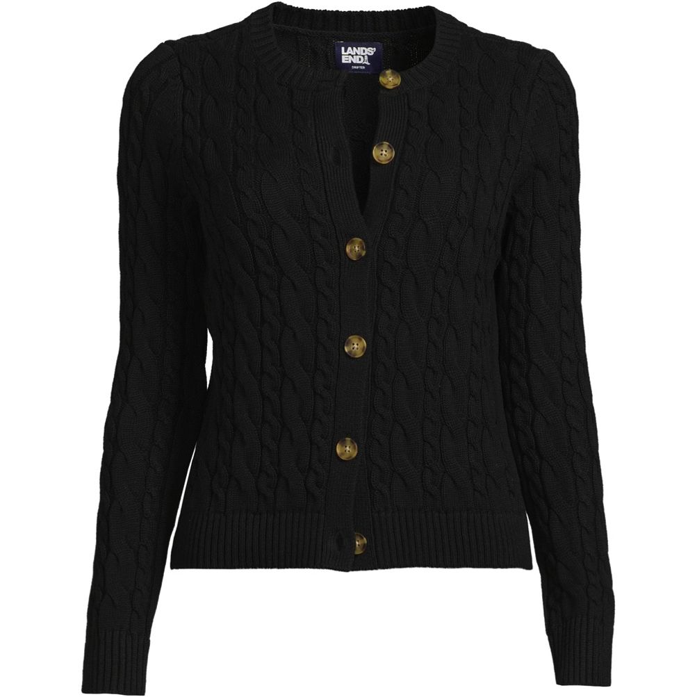 Lands End Women s Cotton Modal 3 4 Sleeve Cable Cardigan Sweater at Amazon Women s Clothing store Very well made.