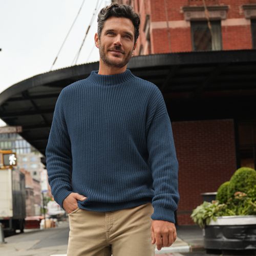 Men s Cotton Drifter Rollneck Sweater Lands End Very well made.