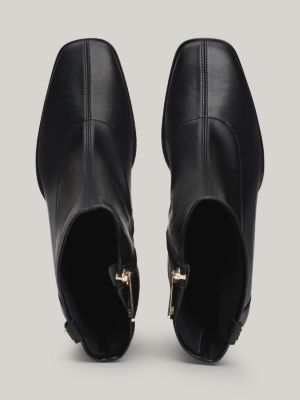Leather Square Toe Block Heel Boots Black Tommy Hilfiger Very well made.