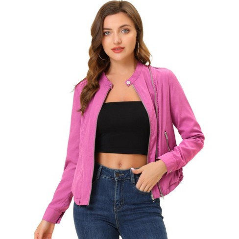 Inspire Chic Women s Stand Collar Zip Up Biker Lightweight Moto Jacket Rose Pink Medium Target Very well made.