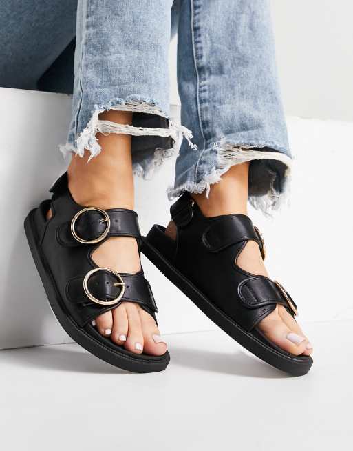London Rebel double buckle footbed sandals in black Very well made.