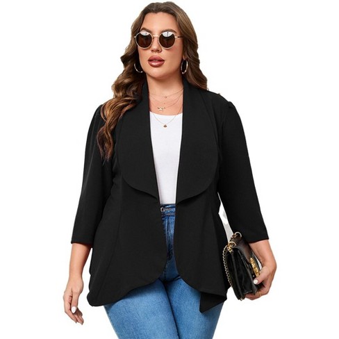 Women s Plus Size 3 4 Sleeve Open Front Blazer Casual Long Sleeve Cardigan Jacket Office Longline Pelpum Blazer Black 3 Xl Target Very well made.