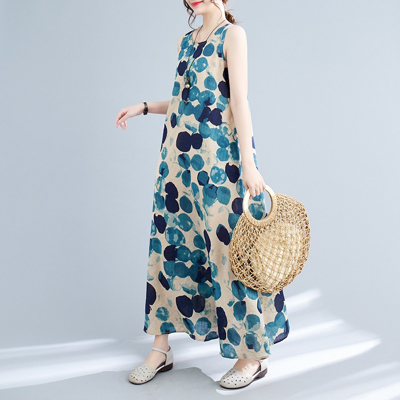 Women s Floral Summer Sun Dress Sleeveless Flowy Maxi Dresses Cotton Linen Floral Printed Casual Loose Beach Long Swing Holiday Dress with Pockets Shopee Malaysia Very well made.