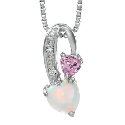 FINE JEWELRY Lab Created Opal and Pink Sapphire Sterling Silver Double Heart Pendant Necklace Dulles Town Center Very well made.