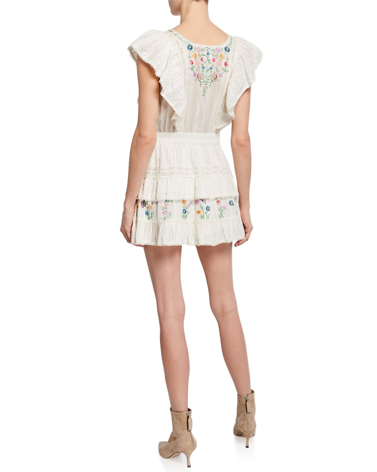 LoveShackFancy Mini Dress Romy Cream Floral Embroidered Cotton Size Medium Very well made.