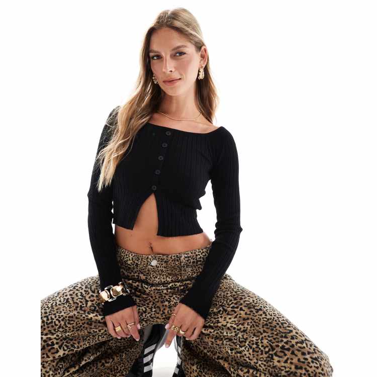 Bershka Top in maglia nero con scollo bardot e bottoni sul davanti ASOS Very well made.