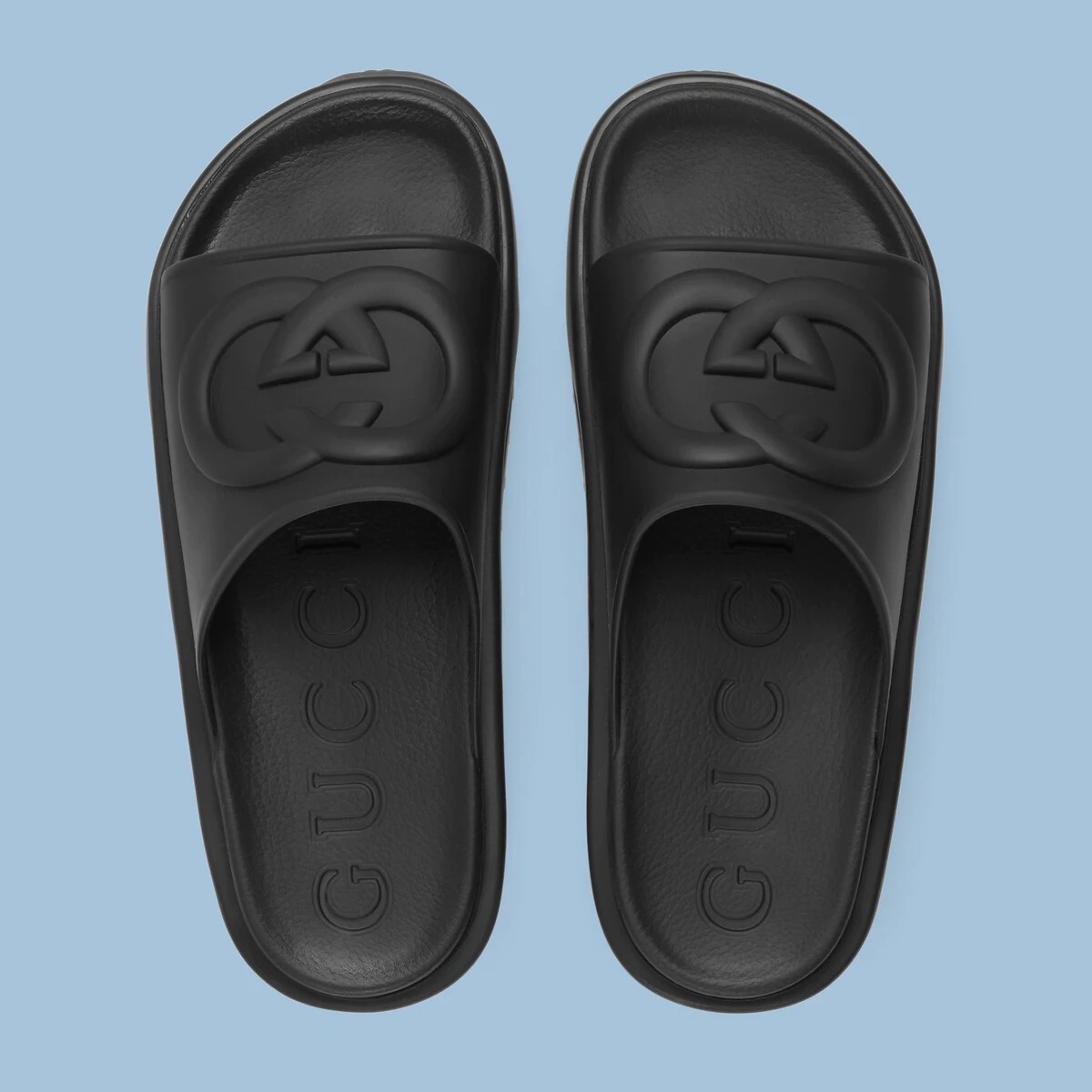Men s Interlocking G slide sandal in black rubber GUCCI US Very well made.