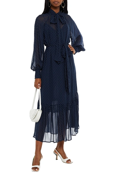 Michael Michael Kors Pussy bow Gathered Polka dot Chiffon Midi Dress In Blue ModeSens Very well made.