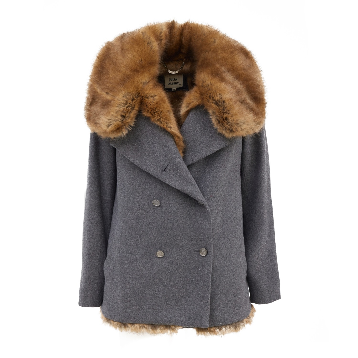 Mid Thigh Length Double Breasted Coat With Fur Collar Grey Julia Allert Wolf Badger Very well made.