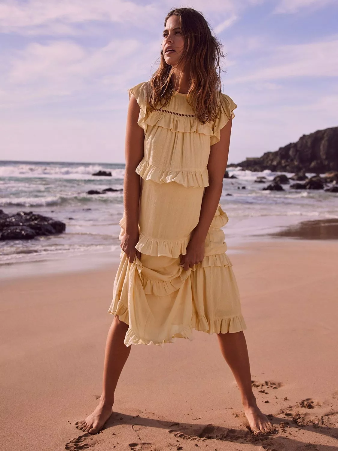 Mint Velvet Ruffle Tiered Midi Dress Yellow Very well made.