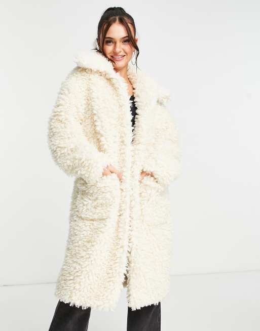 Miss Selfridge fluffy borg maxi coat in cream Very well made.