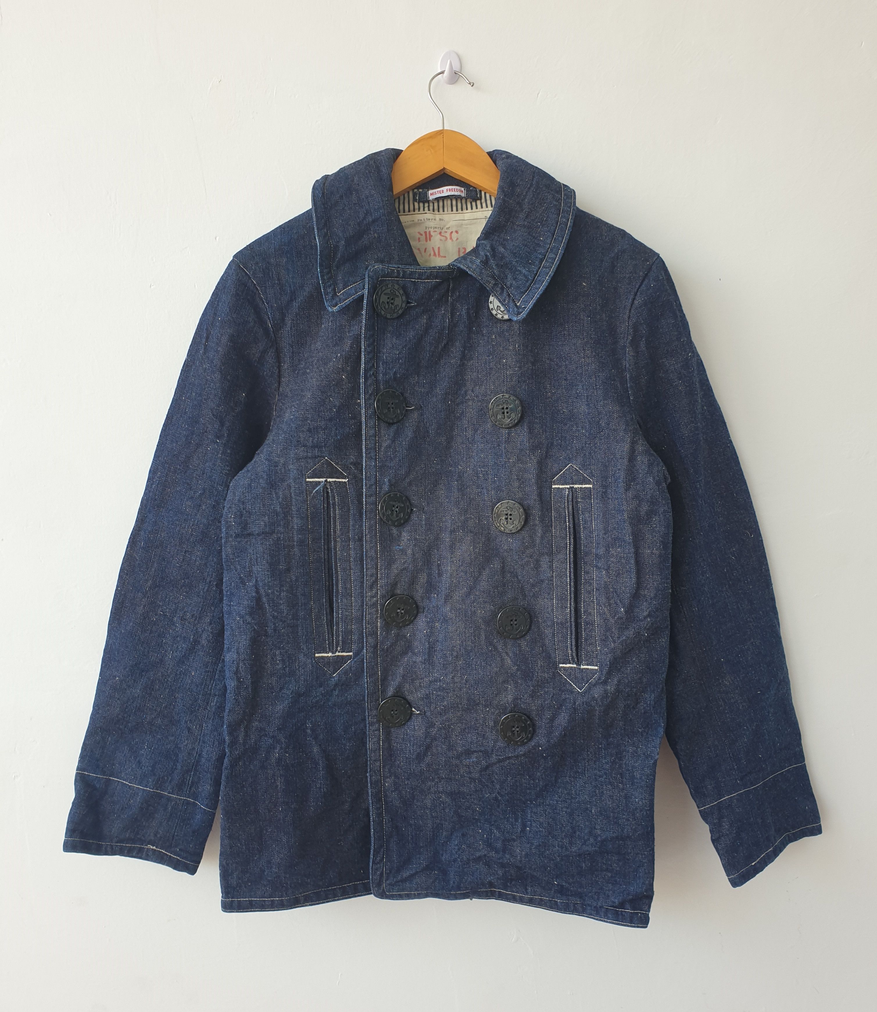 Mister Freedom 2023 Peacoat Okinawa denim Ahoy it s here Pattern freely inspired by early 1910 s 1930 s USN and USCG melton wool 10 button. Instagram Very well made.