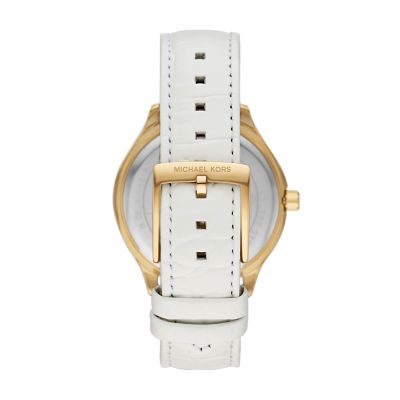Michael Kors Sage Three Hand White Croco Embossed Leather Watch MK4818 Watch Station Very well made.