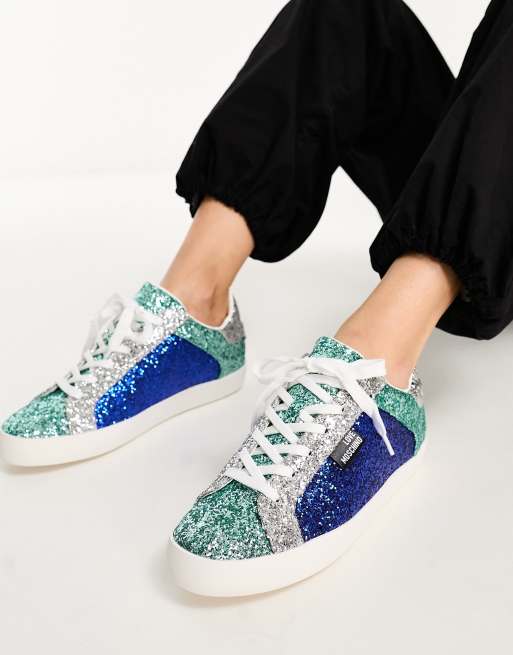 Love Moschino all over glitter sneakers in blue mix Very well made.