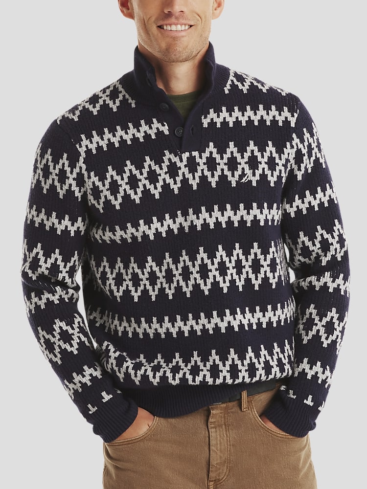 Nautica Classic Fit Sustainably Crafted Mock Neck Jacquard Sweater Sweaters Men s Wearhouse Very well made.