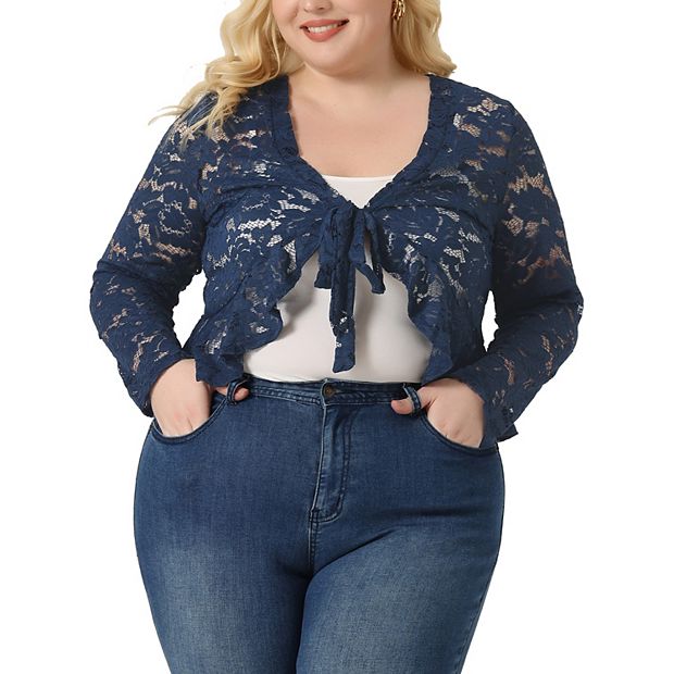 Plus Size Cardigan For Women Bolero Shrug 3 4 Sleeve Tie Front Sheer Lace Crop Cardigans Very well made.