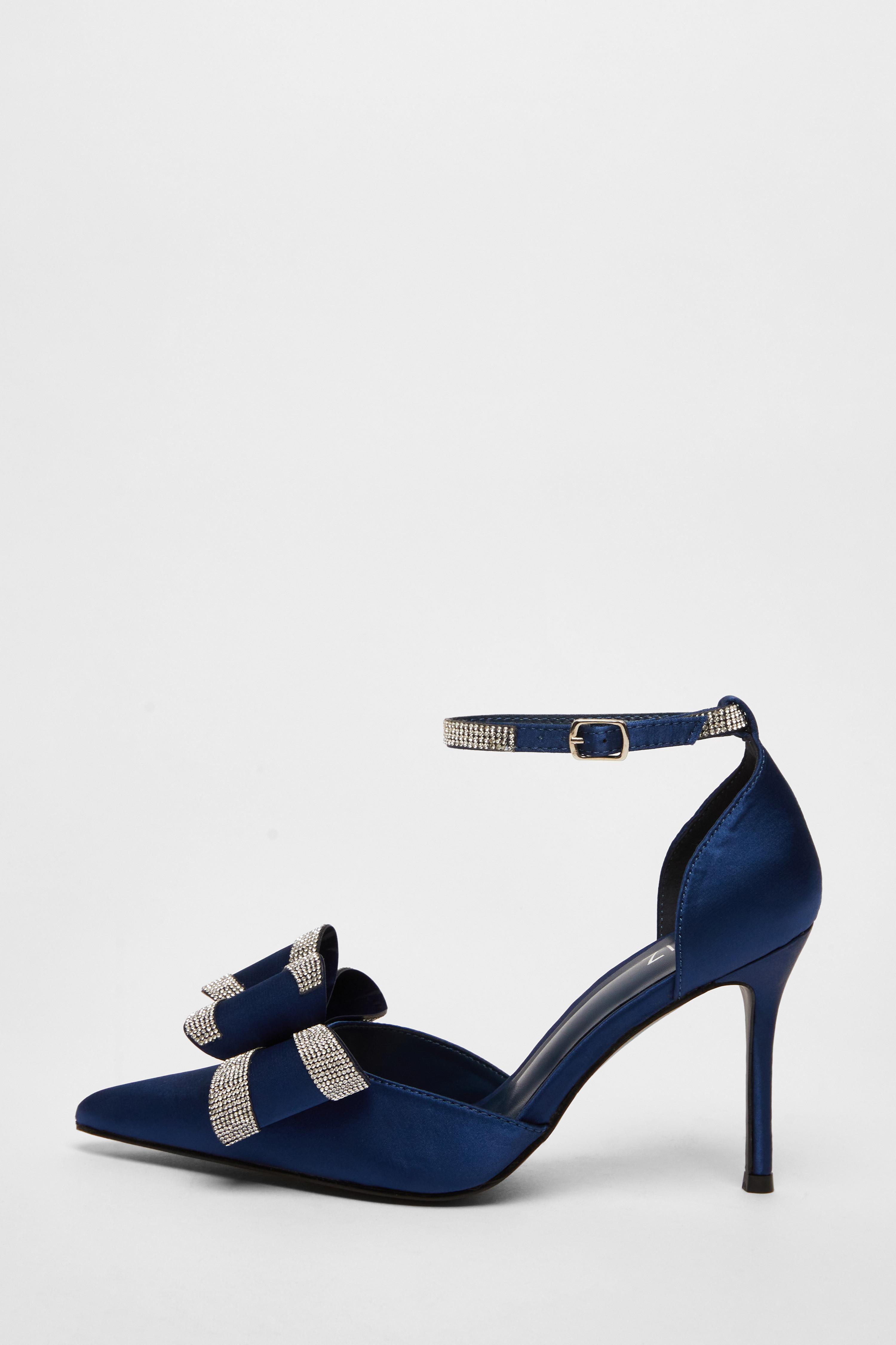 Navy Satin Diamante Bow Court Heels QUIZ Clothing Very well made.