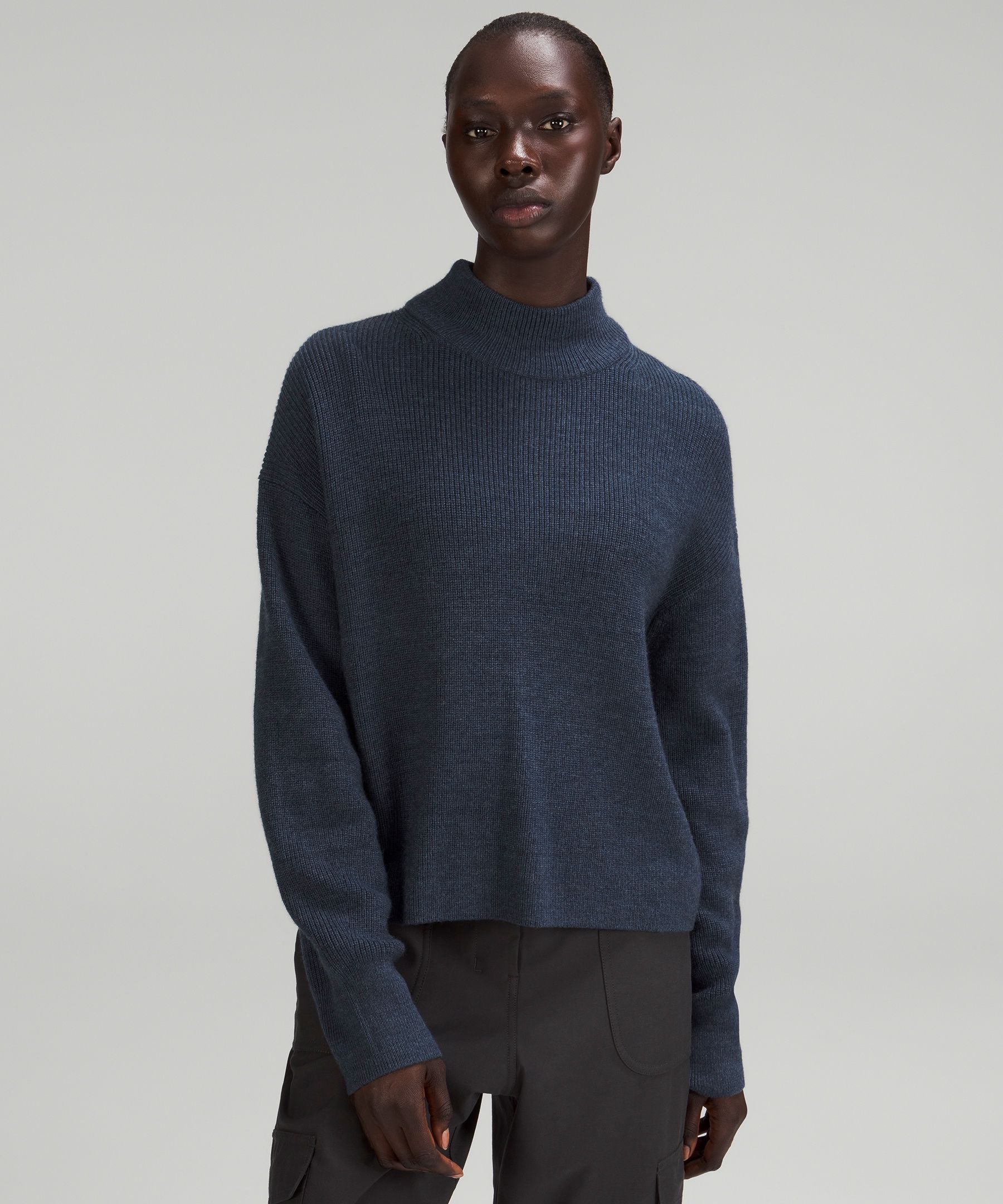 Lululemon Merino Wool blend Ribbed Turtleneck Sweater In Heathered True Navy ModeSens Very well made.