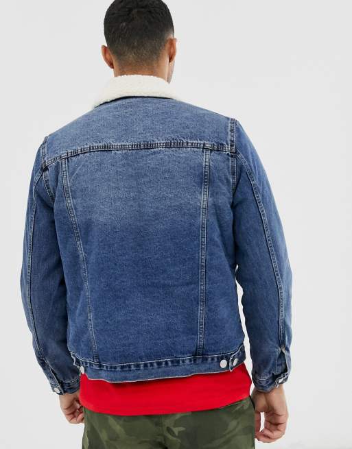 New Look borg lined denim jacket in blue wash Very well made.