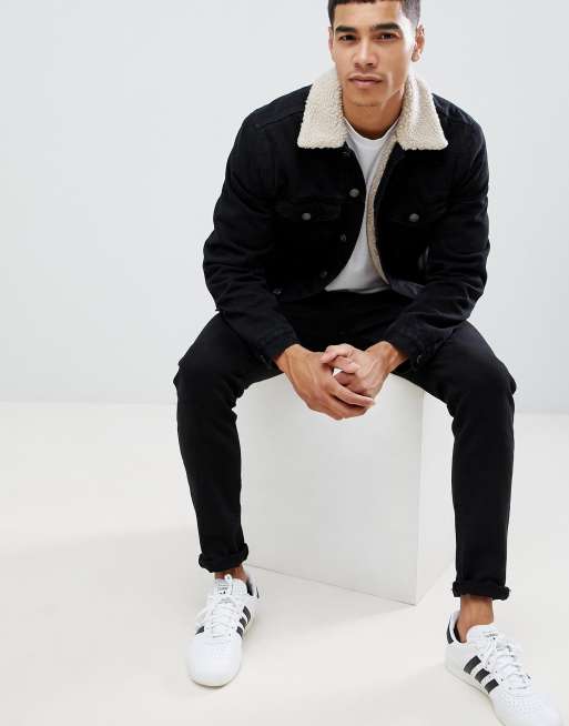New look borg lined discount denim jacket in washed black Very well made.
