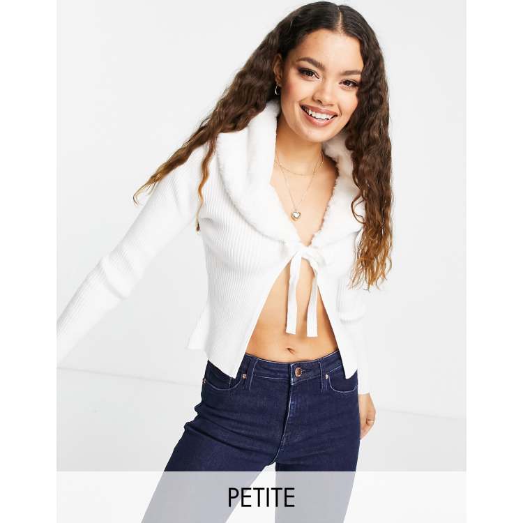 New Look Petite faux fur collar cardigan in cream Very well made.