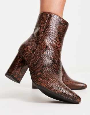 Brown Faux Snake Pointed Block Heel Ankle Boots New Look Very well made.