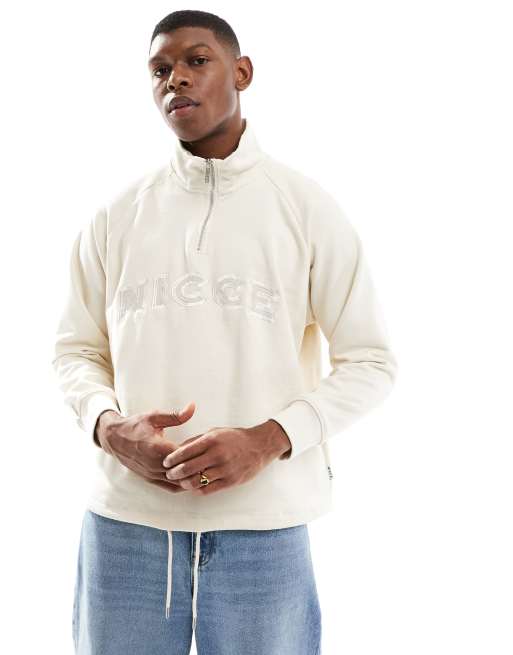 Nicce 1 4 zip logo sweatshirt in white ASOS Very well made.