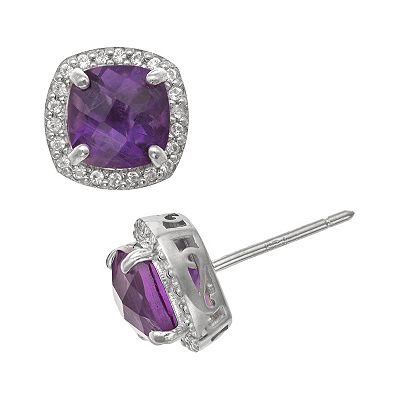 Sterling Silver Amethyst and Lab Created White Sapphire Halo Stud Earrings Very well made.