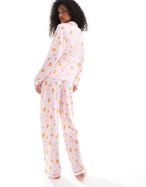 ASOS DESIGN cookies and milk long sleeve top trouser pyjama set in brown Very well made.
