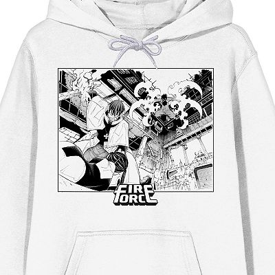 Fire Force Manga Anime Characters Fight Scene Long Sleeve Adult White Hooded Sweatshirt XXL Very well made.