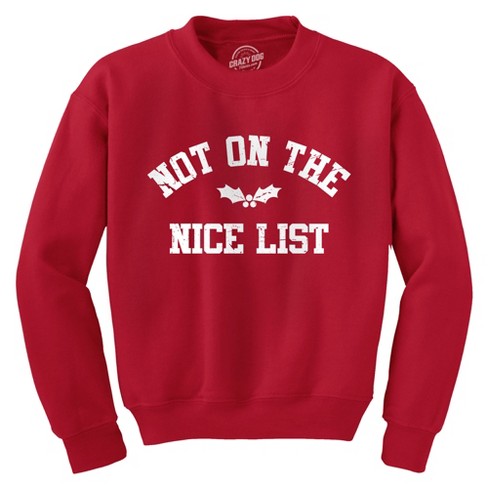 Not On The Nice List Crewneck Sweatshirt Funny Xmas Party Santas Naughty List Joke Longsleeve Sweater Crazy Dog Crew Neck Sweatshirt Target Very well made.