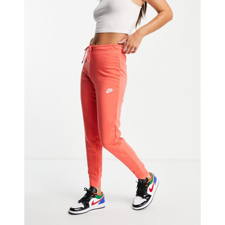 Nike essential fleece tight fit joggers in coral pink Very well made.