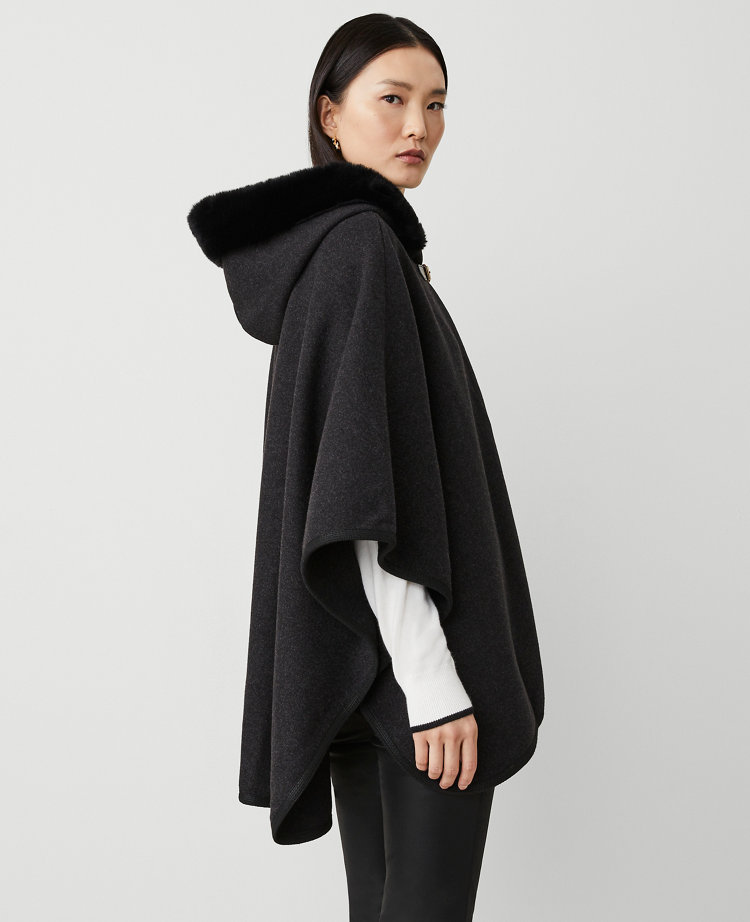 Faux Fur Trim Open Poncho Very well made.