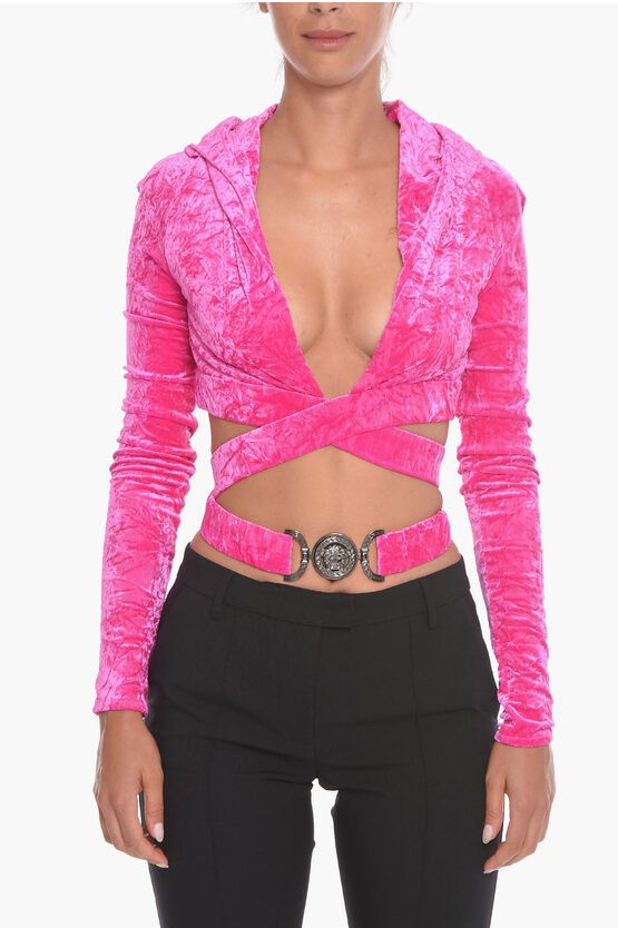 Versace og1mm0524 Velour Cropped Hoodie in Pink TOP DRWR Very well made.